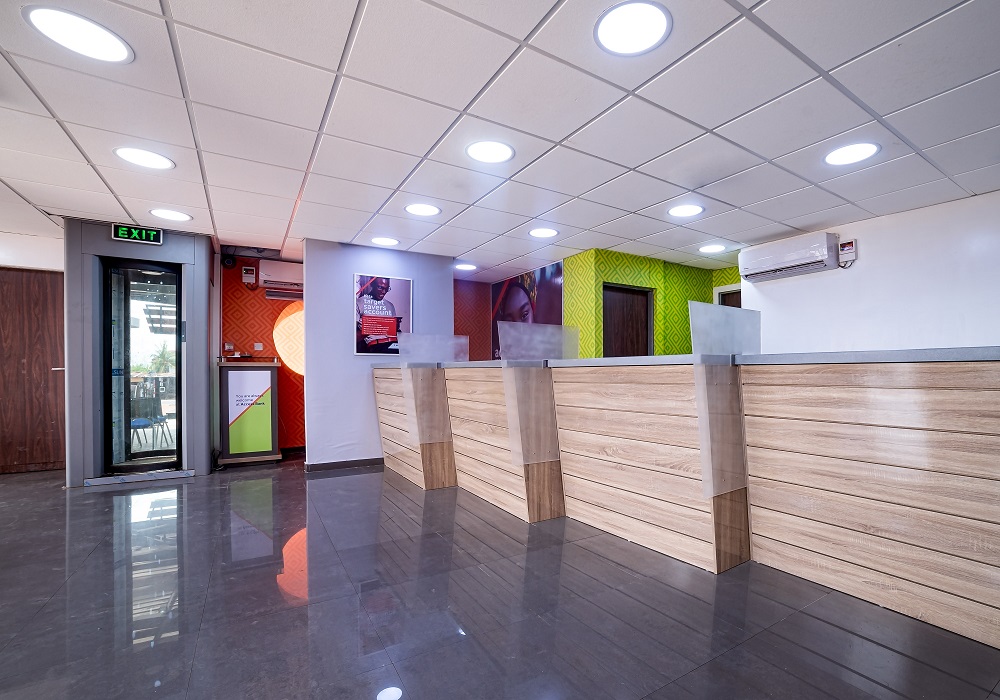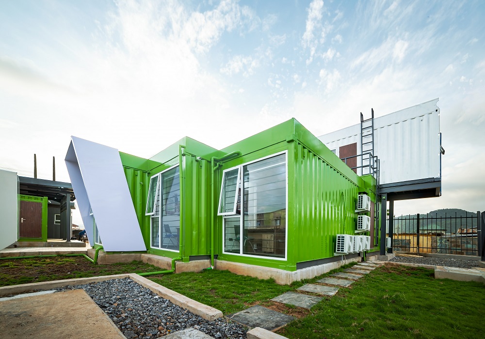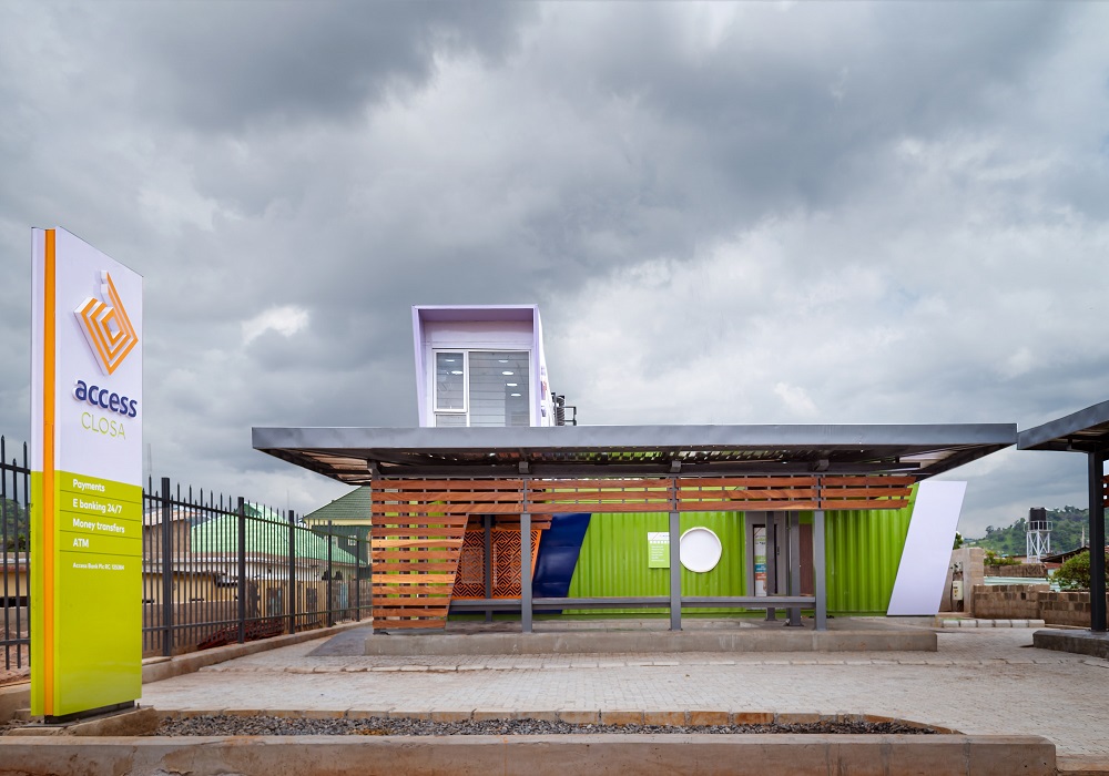 Access Bank, a leading financial institution, commisioned us to design and build a small branch office using stacked shipping containers, laser-cut aluminum panels, steel sections, and wood, resulting in a unique and contemporary space that is open, airy, colorful, and visually stunning.