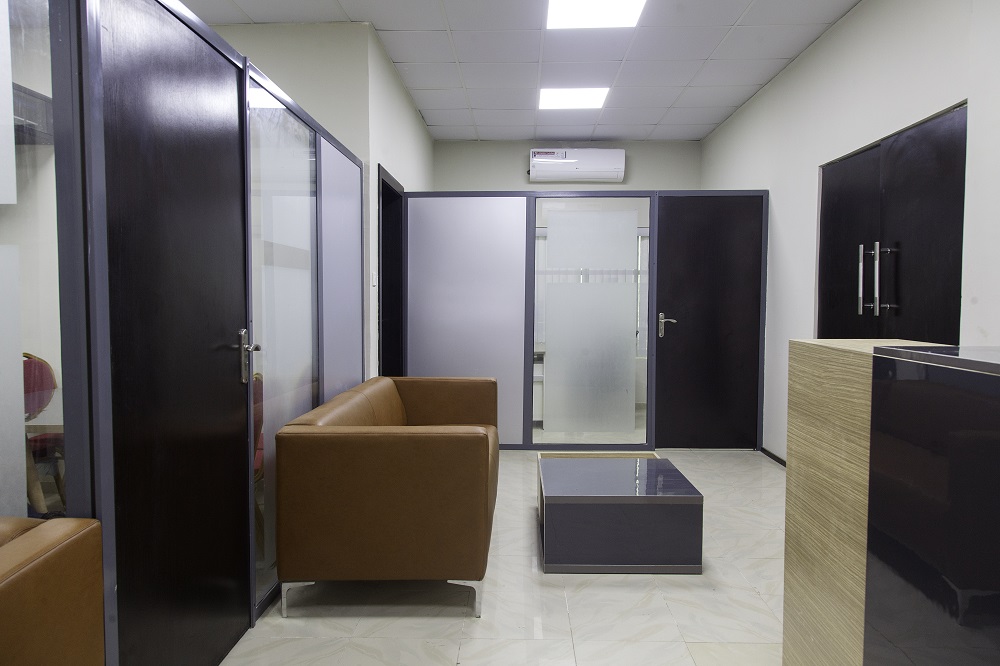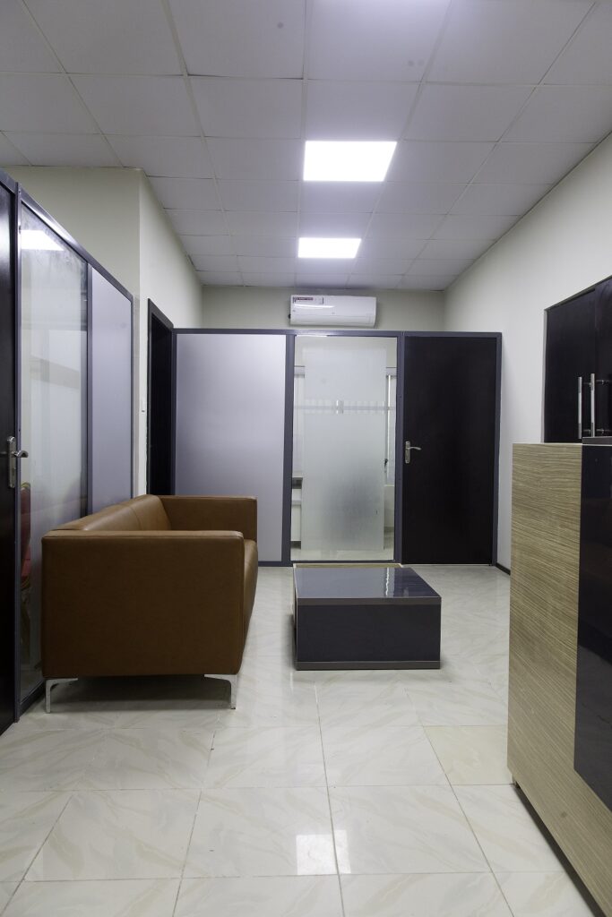 Renovation of 300 Sqm of office space with uniquehand cut patterns on glass frosting.