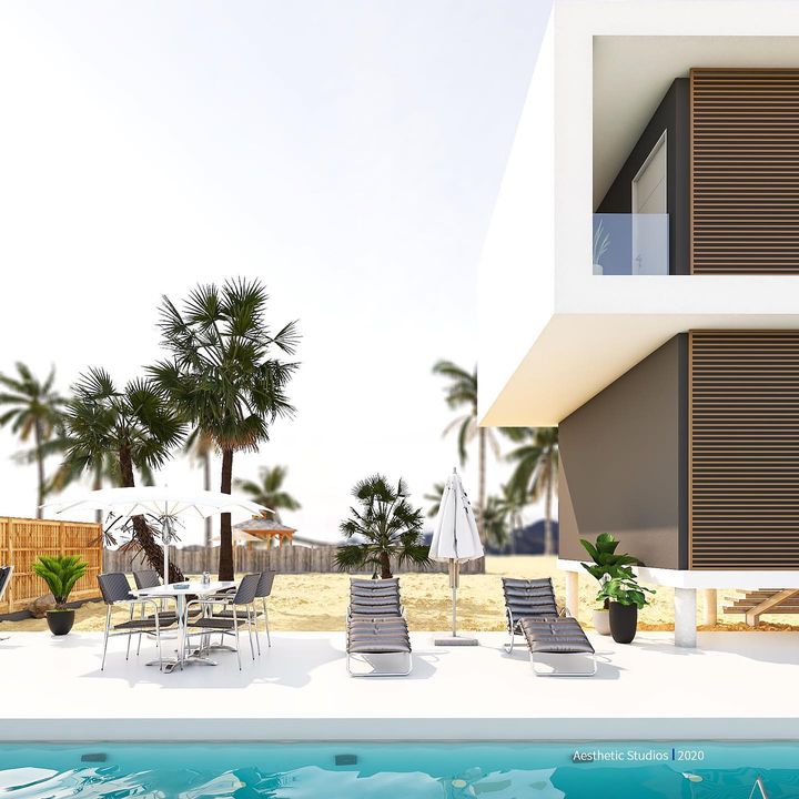 Architectural Design complementing the coastal environment creating harmonious blend with the surroundings by Incorporating large windows, sliding glass doors to maximize natural light and capture panoramic views. Incorporating passive design strategies with natural ventilation and shading elements, to reduce the reliance on mechanical systems and enhance energy efficiency. Design of outdoor areas with amenities for relaxation, recreation, and entertainment, swimming pool, outdoor kitchen, or fire pit